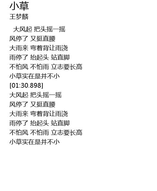 | [00:57.989] | 不怕风 不怕雨 立志要长高 |