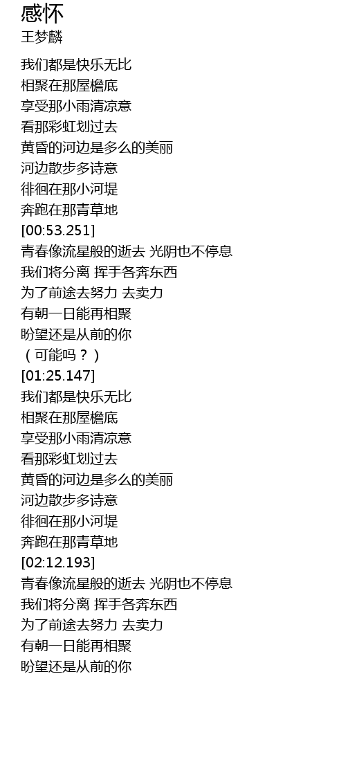 | [00:56.804] | qīng chūn xiàng liú xīng bān de shì qù guāng yīn yě bù tíng xī |