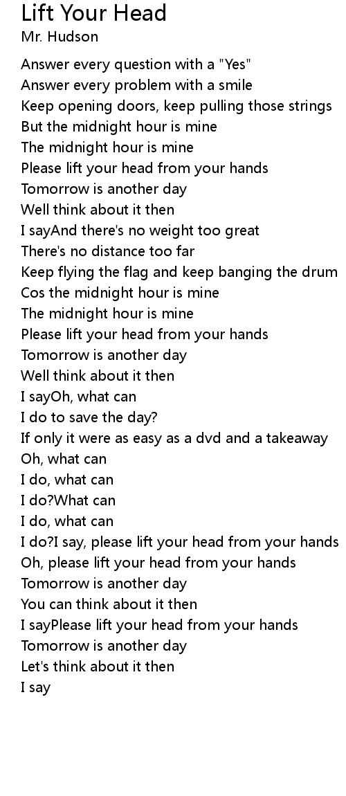 Oh, please lift your head from your hands |
