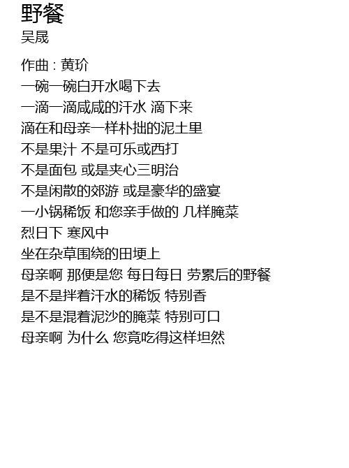 | 母亲啊 那便是您 每日每日 劳累后的野餐 | |