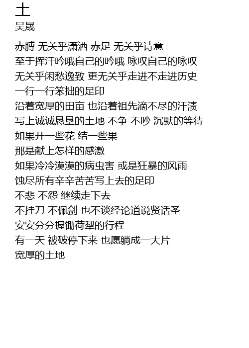 | 写上诚诚恳垦的土地 不争 不吵 沉默的等待 | |