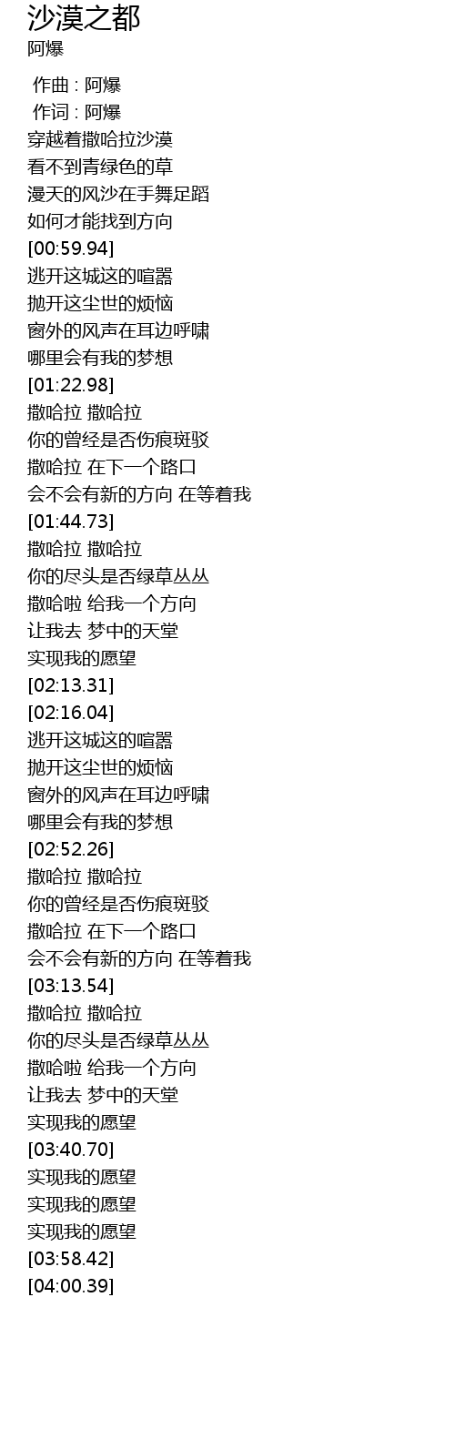 | [01:34.12] | 撒哈拉 在下一个路口 |