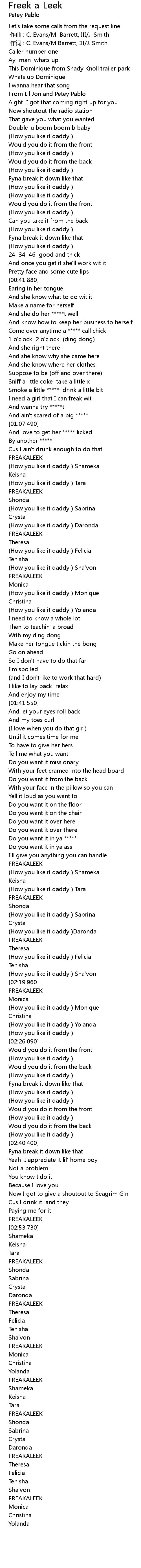 | [02:22.110] | How you like it daddy Monique |