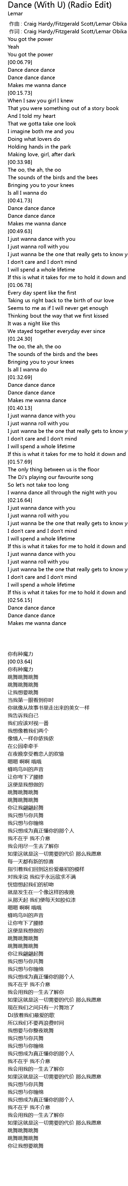 | [00:00.348] | 作词 : Craig Hardy/Fitzgerald Scott/Lemar Obika |