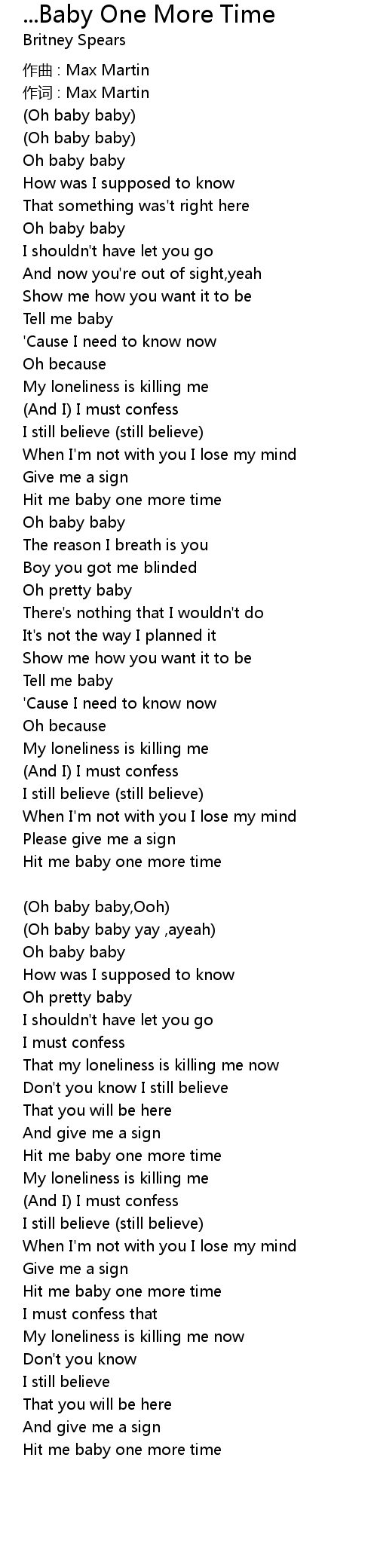 | Oh baby baby yay , ayeah | |