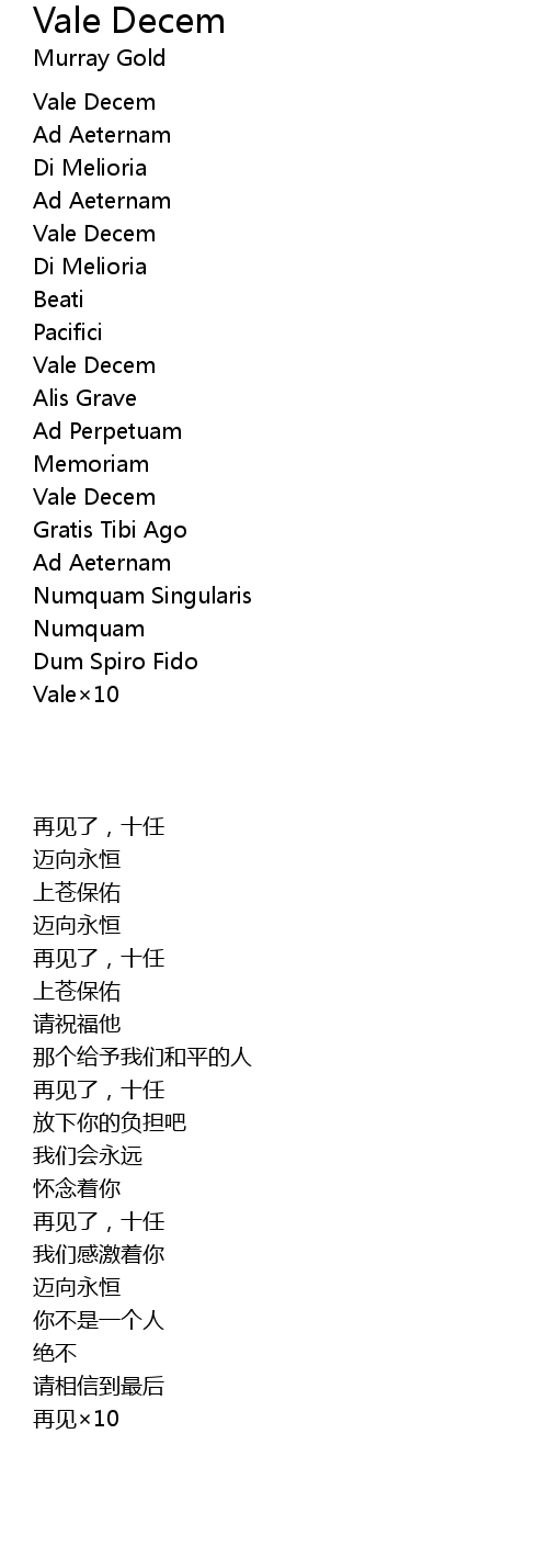 | Song | Vale Decem |