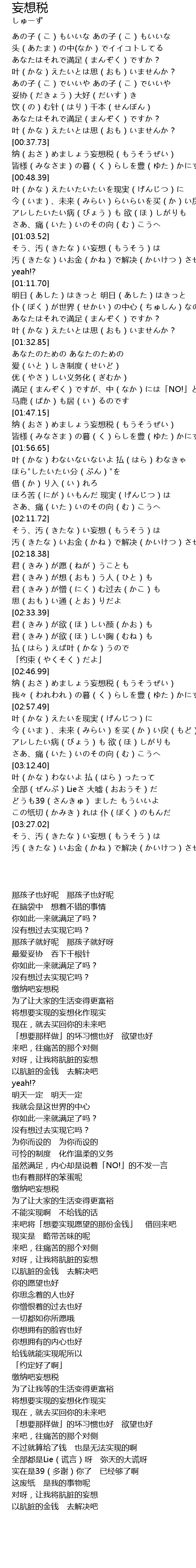 | [02:48.28] | 纳(おさ)めましょう妄想税(もうそうぜい) |