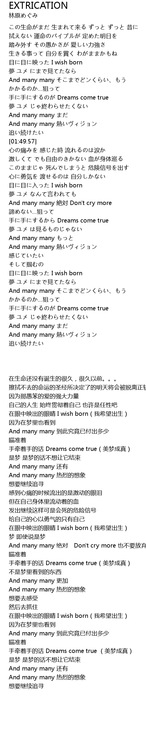 | [03:09.04] | And many many 絶対 Don't cry more |