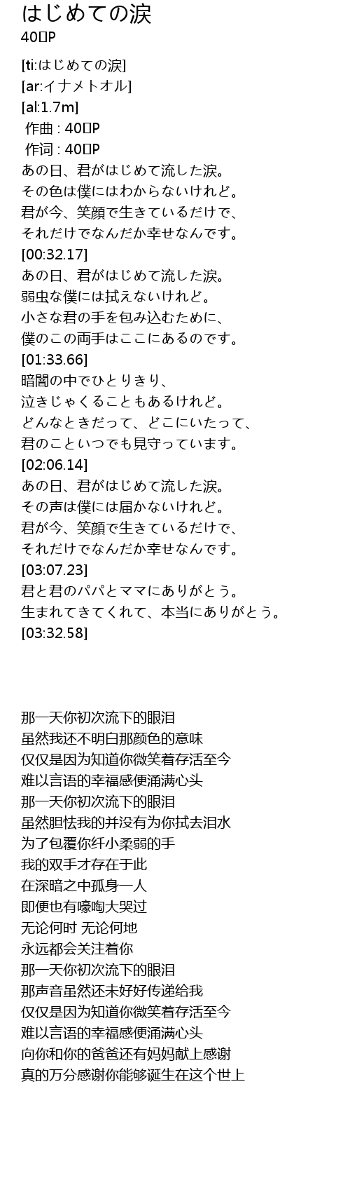 [ti:はじめての涙] |