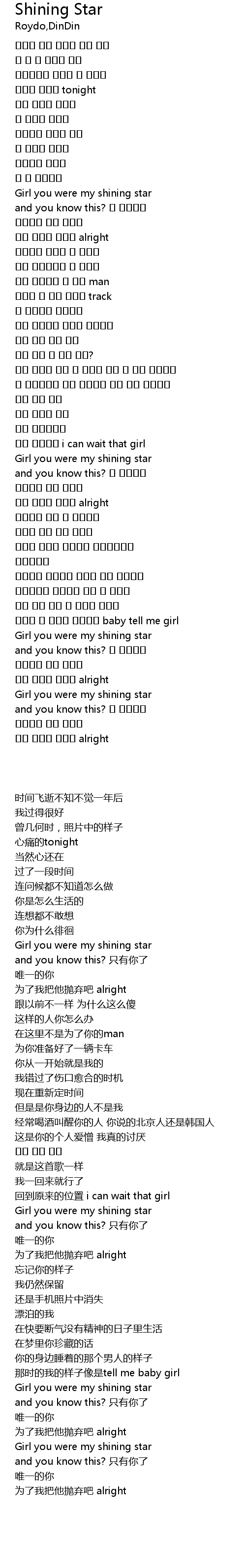 | [02:35.68] | Girl you were my shining star |