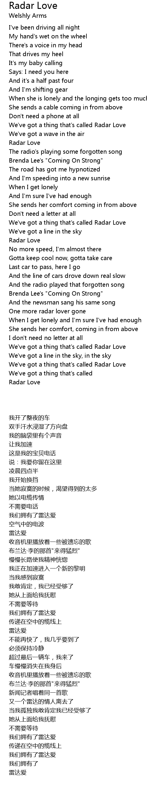 We've got a thing that's called Radar Love |