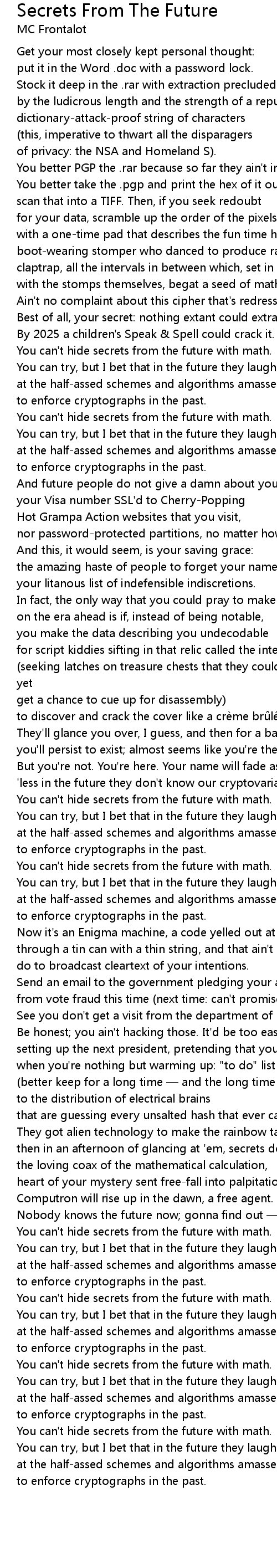 | Ain' t no complaint about this cipher that' s redressable! | |