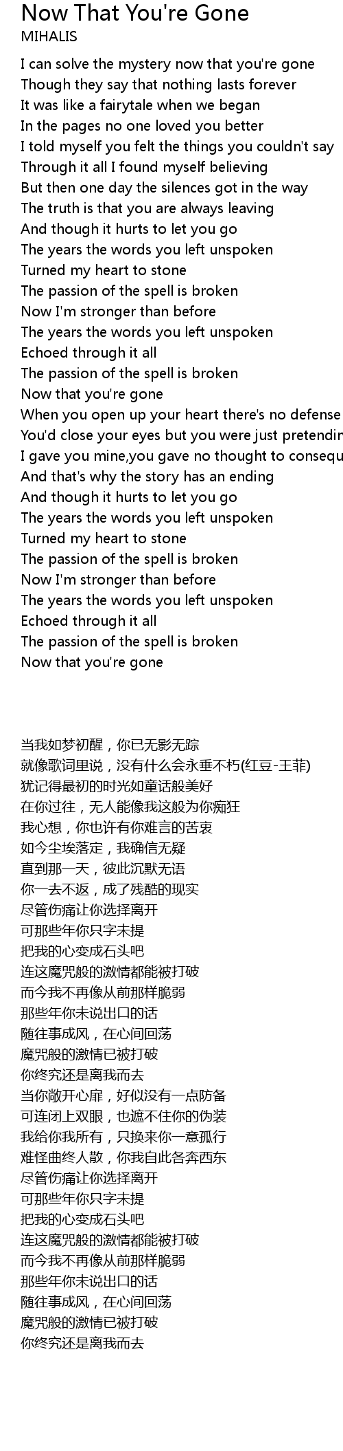 | [00:16.30] | I can solve the mystery now that you're gone |