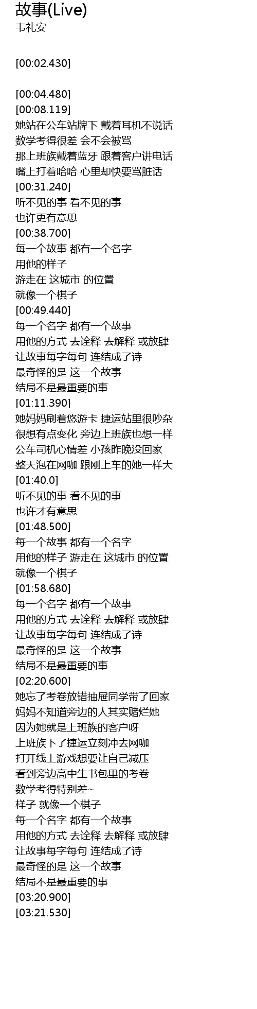| [00:40.800] | mei yi ge gu shi dou you yi ge ming zi |