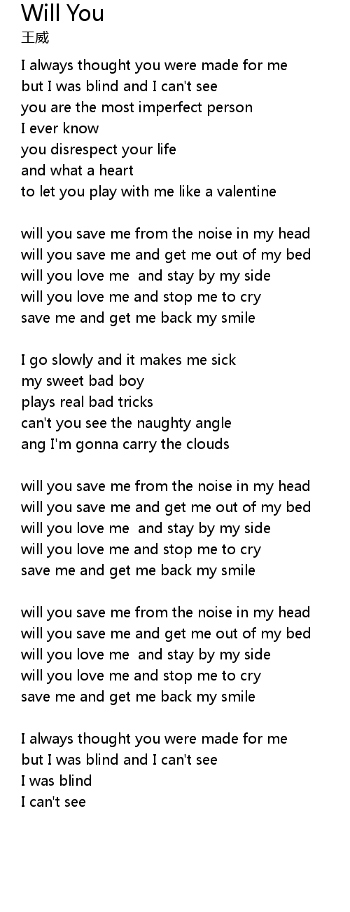 will you save me from the noise in my head |