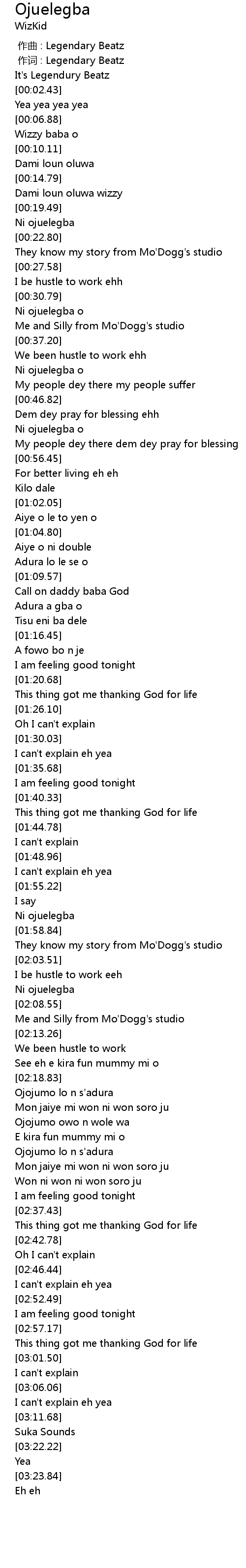 | [00:17.41] | Dami loun oluwa wizzy |
