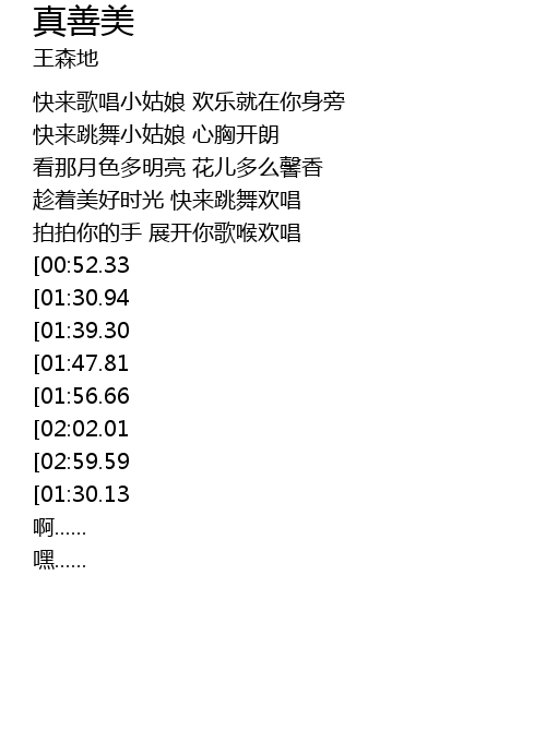 | [03:37.02][02:59.59][02:04.93][01:27.19] | 可爱的姑娘 |