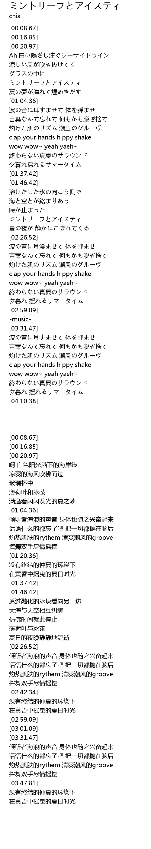 | [03:41.70] | 灼けた肌のリズム 潮風のグルーヴ |