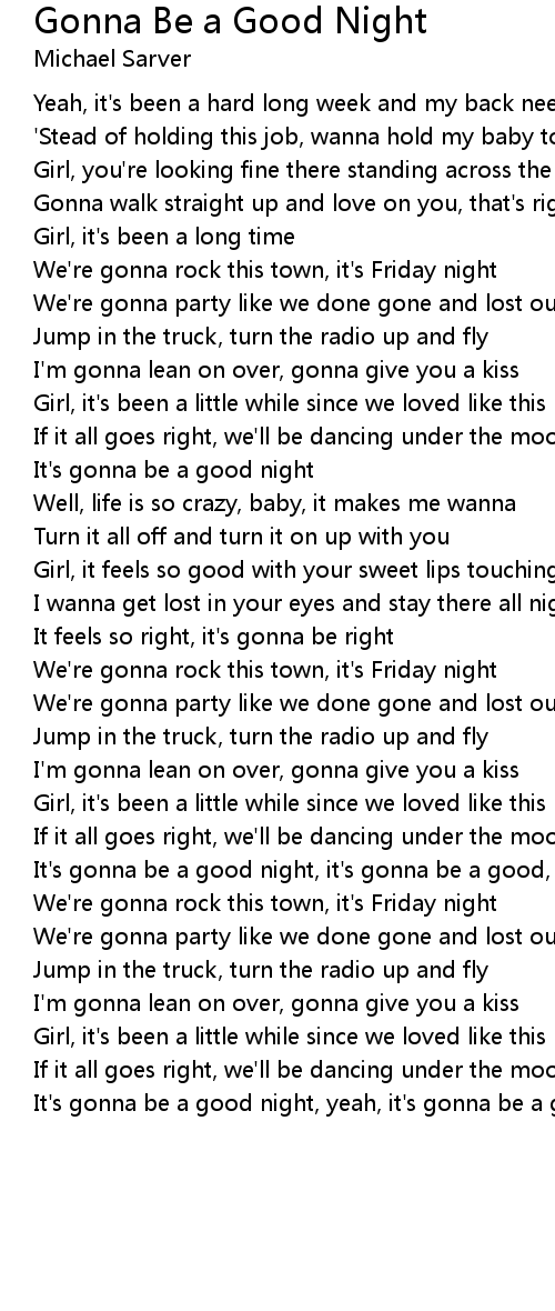 It's gonna be a good night, it's gonna be a good, good night, yeah |