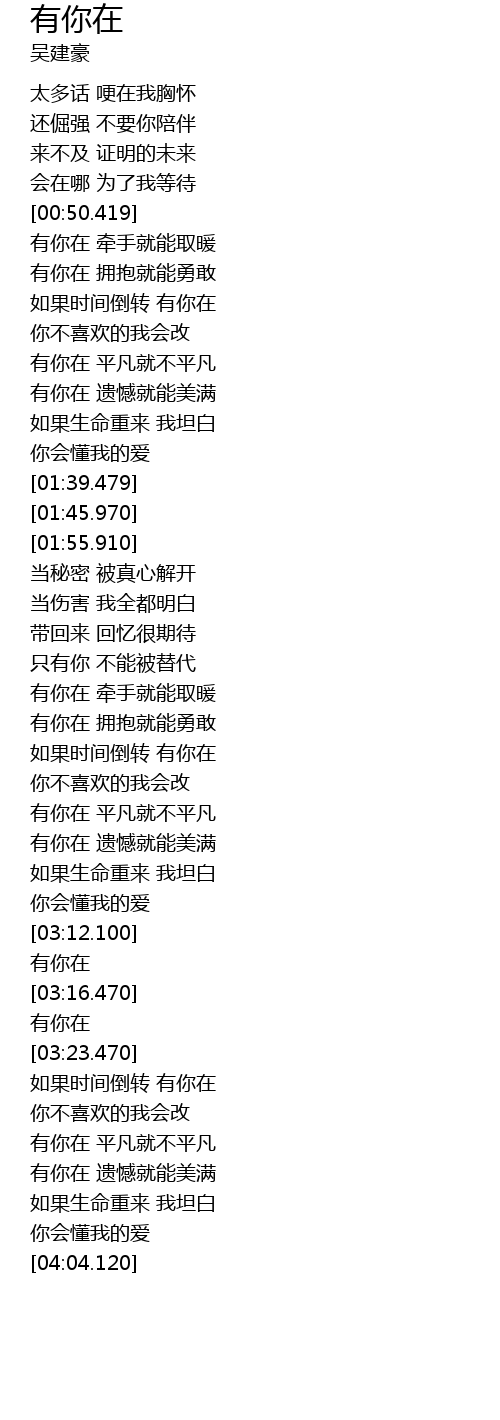 | [03:18.980] | 有你在 |