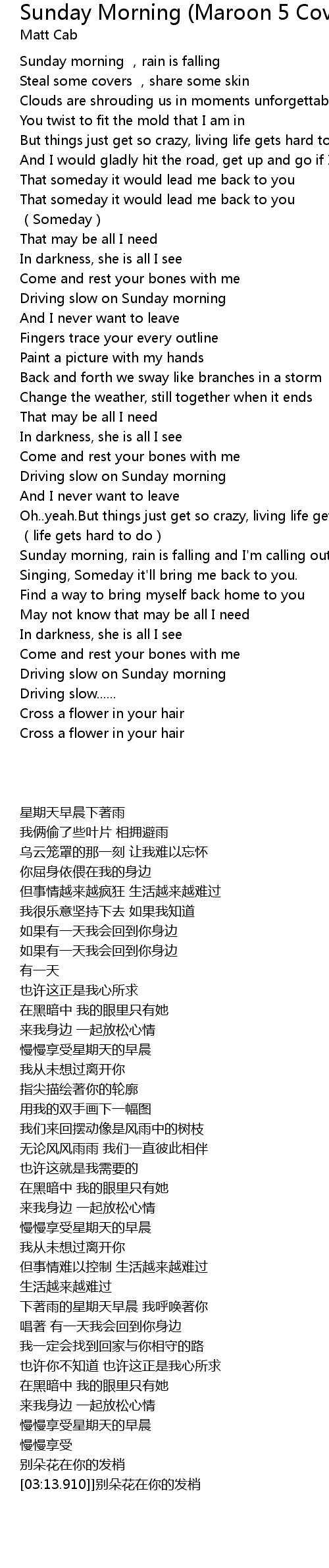 | [02:28.190] | Sunday morning, rain is falling and I'm calling out to you |