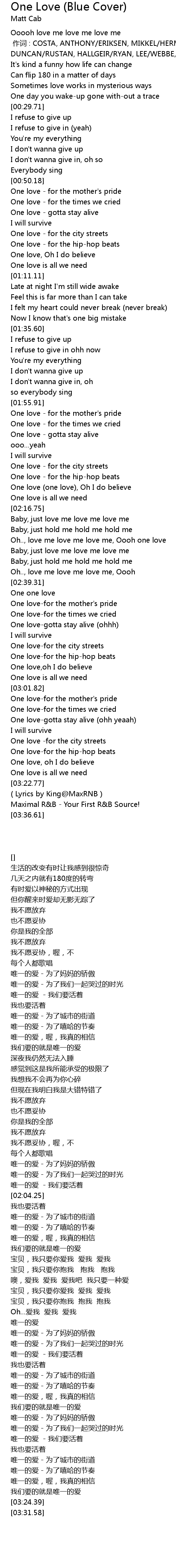 | [02:46.72] | One love-gotta stay alive (ohhh) |