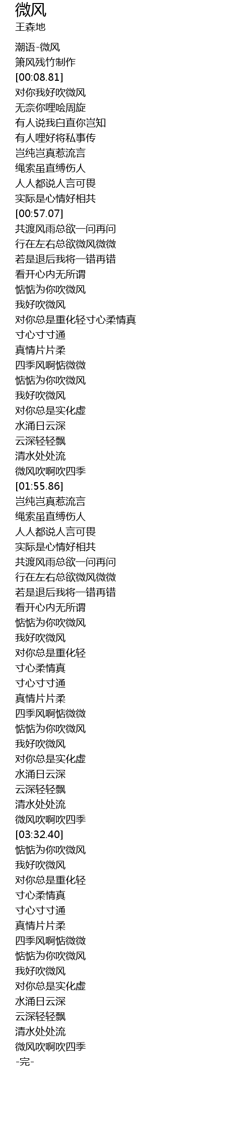 | [03:47.91] | sì jì fēng a diàn wēi wēi |