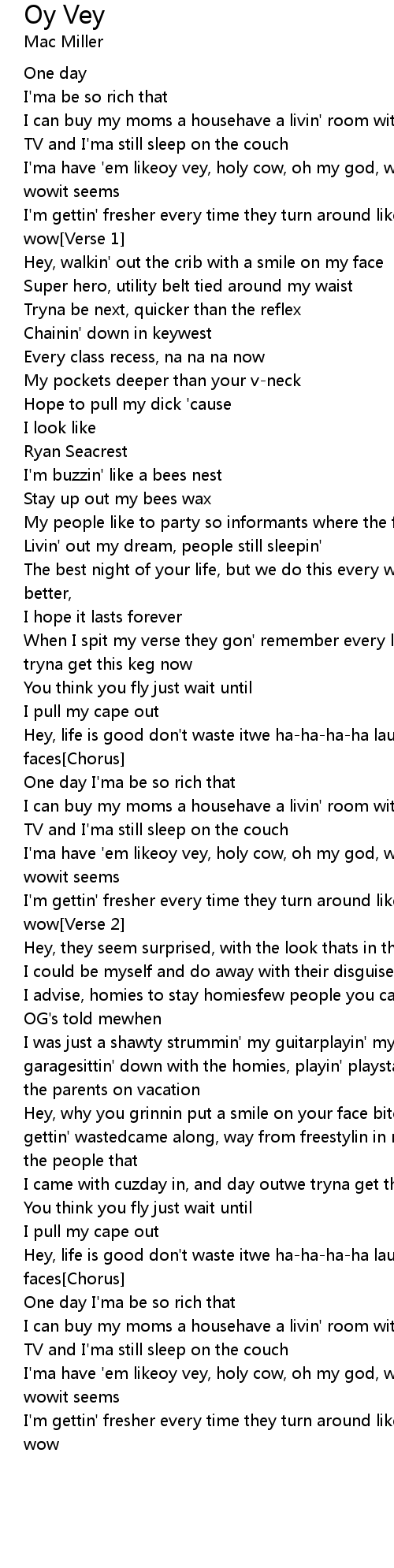 I'ma have 'em likeoy vey, holy cow, oh my god, wowoy vey, holy cow, oh my god, wowit seems |