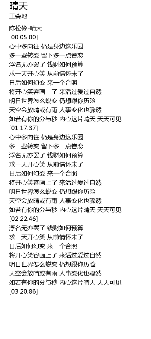 | [03:02.02] | 天空会放晴或有雨 人事变化也骤然 |
