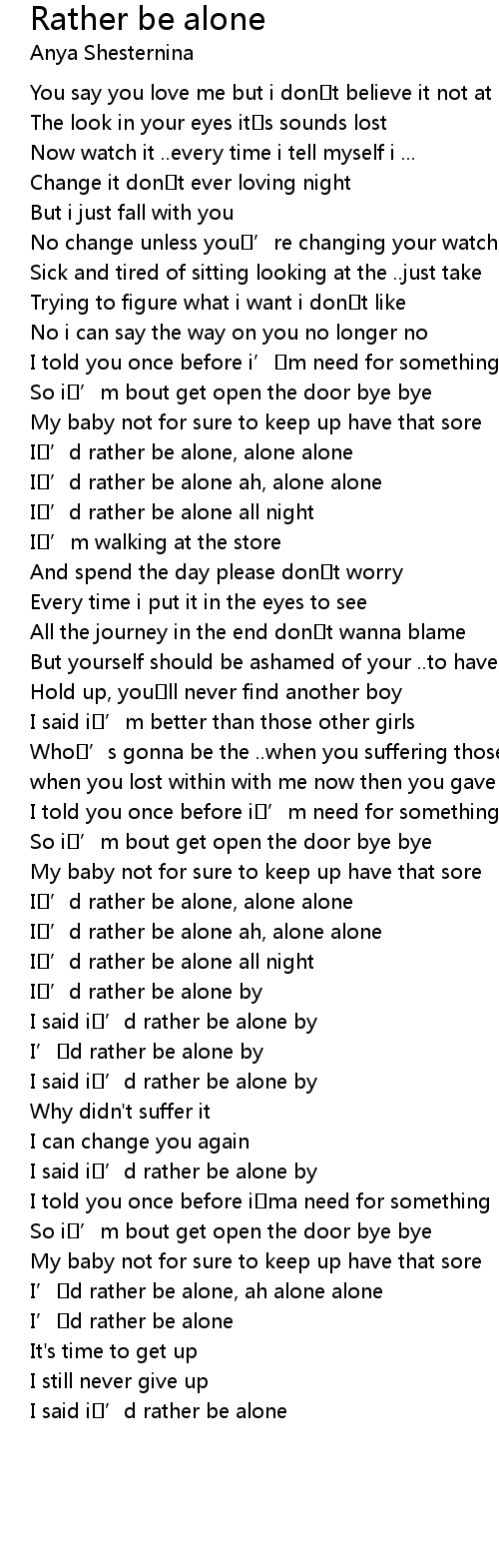 | [02:56.24] | I' d rather be alone, ah alone alone |