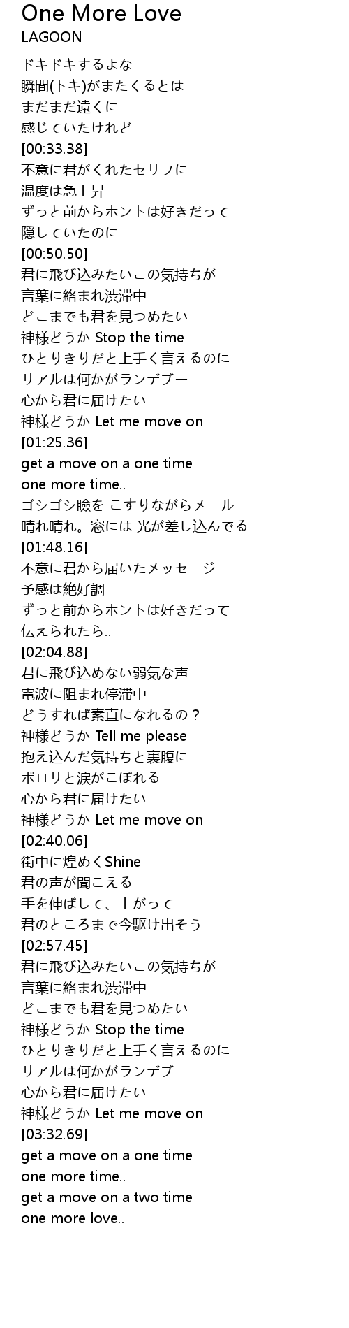 | [01:03.69] | 神様どうか Stop the time |