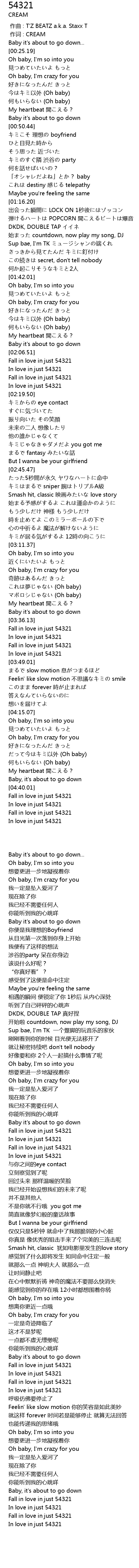 | [00:01.00] | 作词 : CREAM |