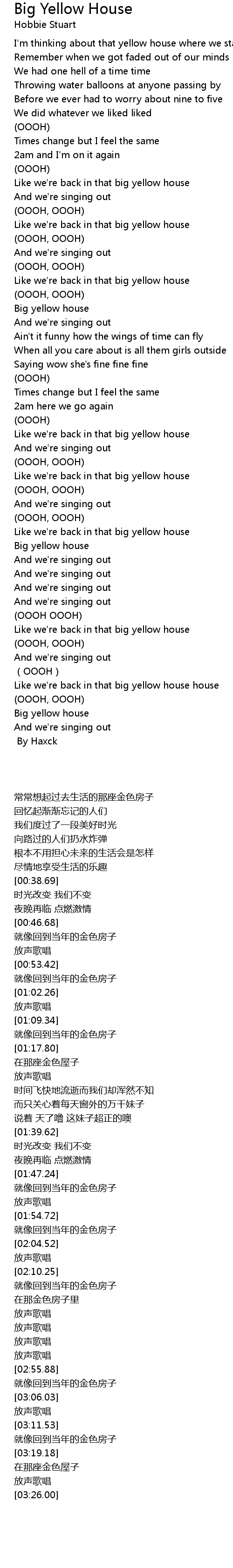 | [03:16.59] | Like we' re back in that big yellow house house |