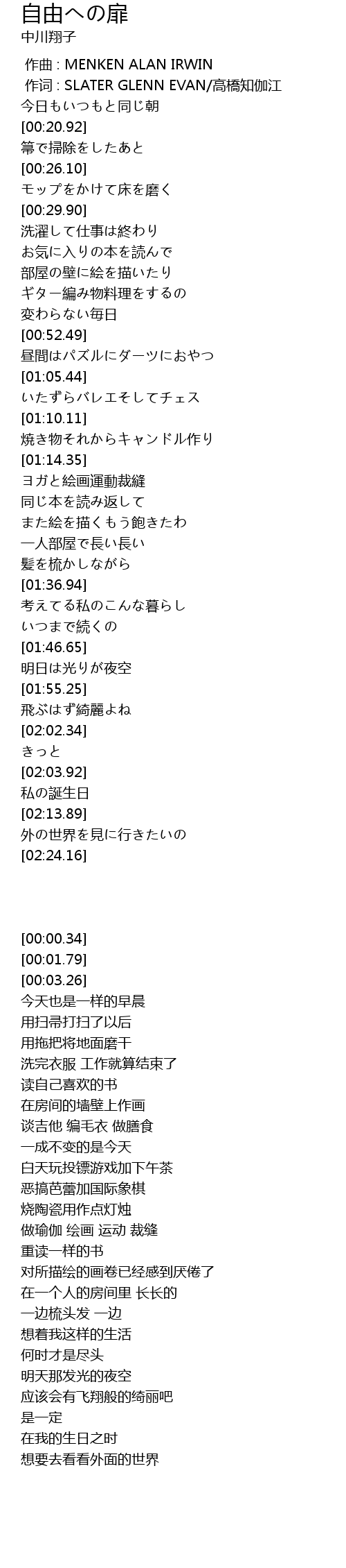 | [02:15.42] | 外の世界を見に行きたいの |