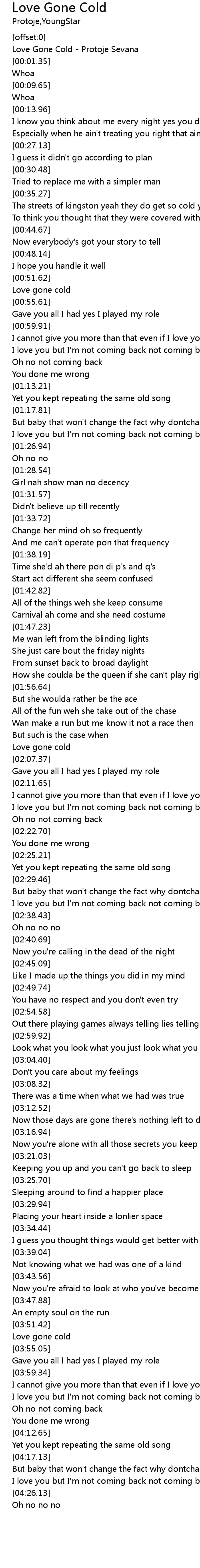 | [00:00.11] | Love Gone Cold - Protoje Sevana |