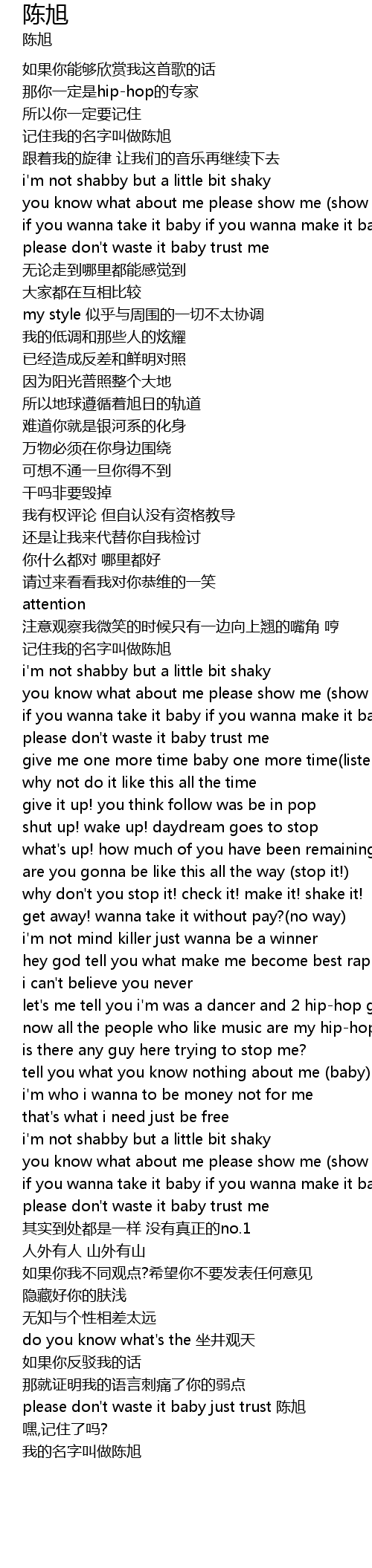 | [03:17.140] | please don't waste it baby just trust 陈旭 |