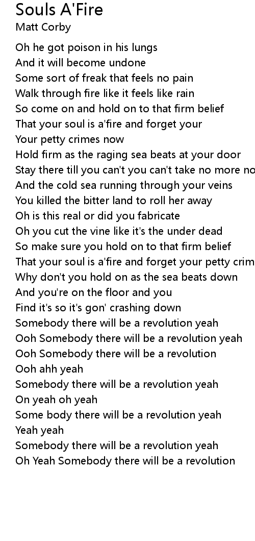 That your soul is a'fire and forget your |