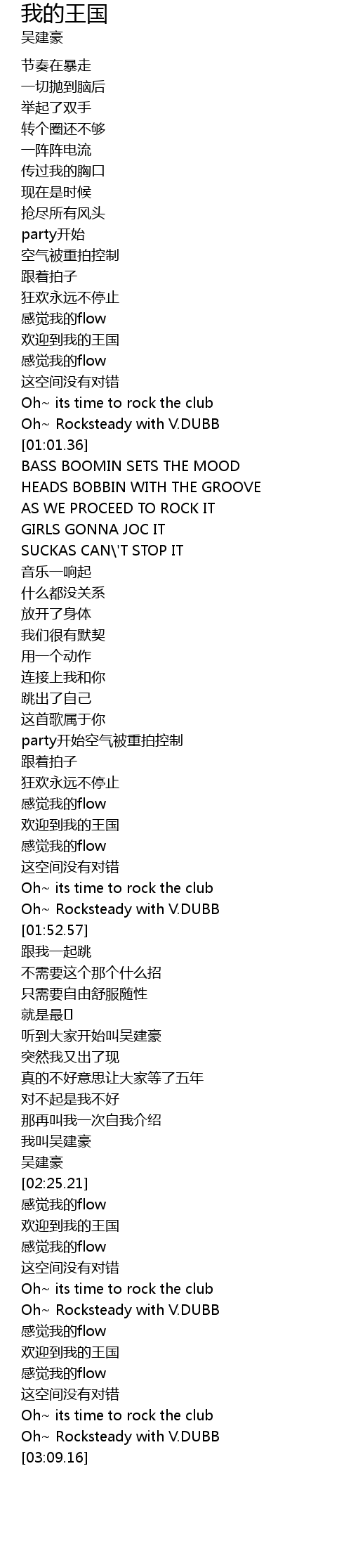 | [02:37.21] | huān yíng dào wǒ de wáng guó |