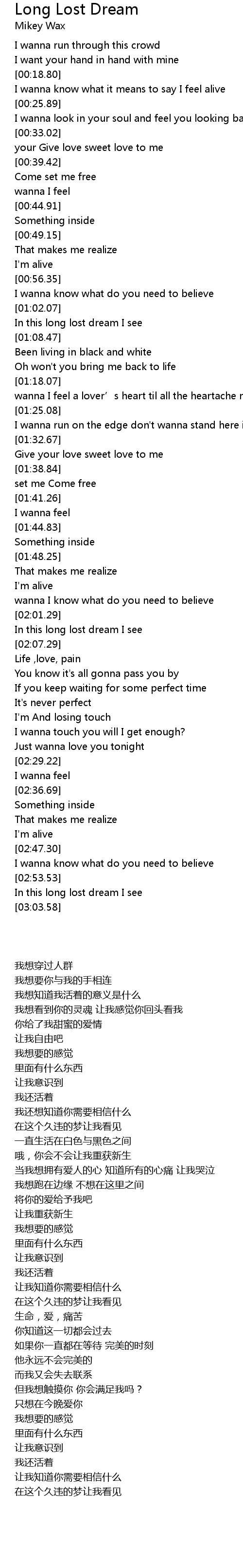 | [00:21.79] | I wanna know what it means to say I feel alive |
