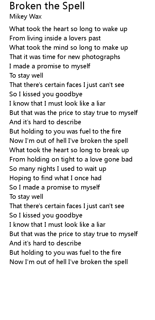 Now I'm out of hell I've broken the spell |