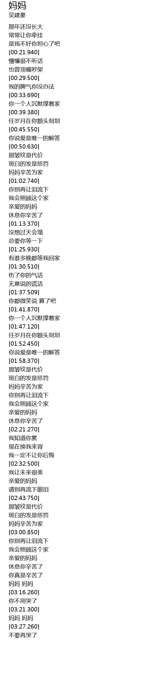 | [03:25.590] | 妈妈 妈妈 |