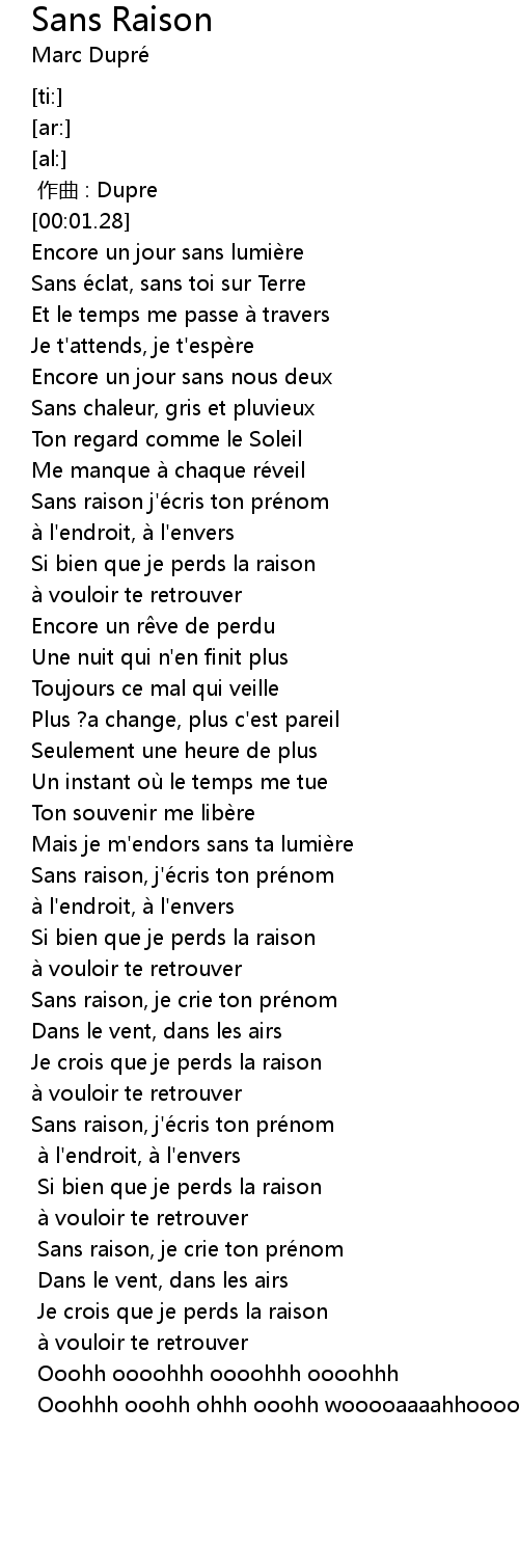 | [02:53.66] | Sans raison, je crie ton prénom |