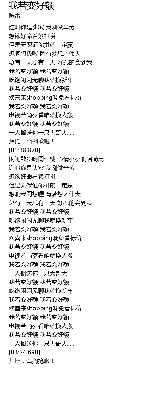 | [03:16.000] | 我若变好额 我若变好额 |