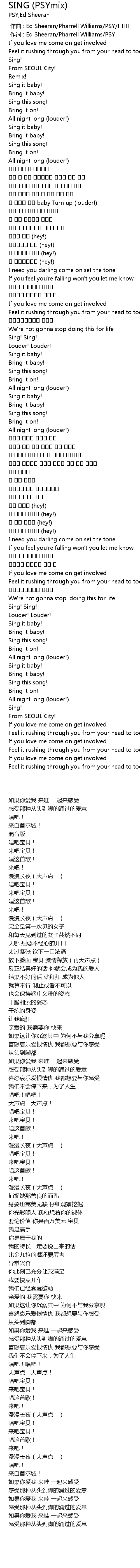 | [00:00.186] | 作词 : Ed Sheeran/Pharrell Williams/PSY |