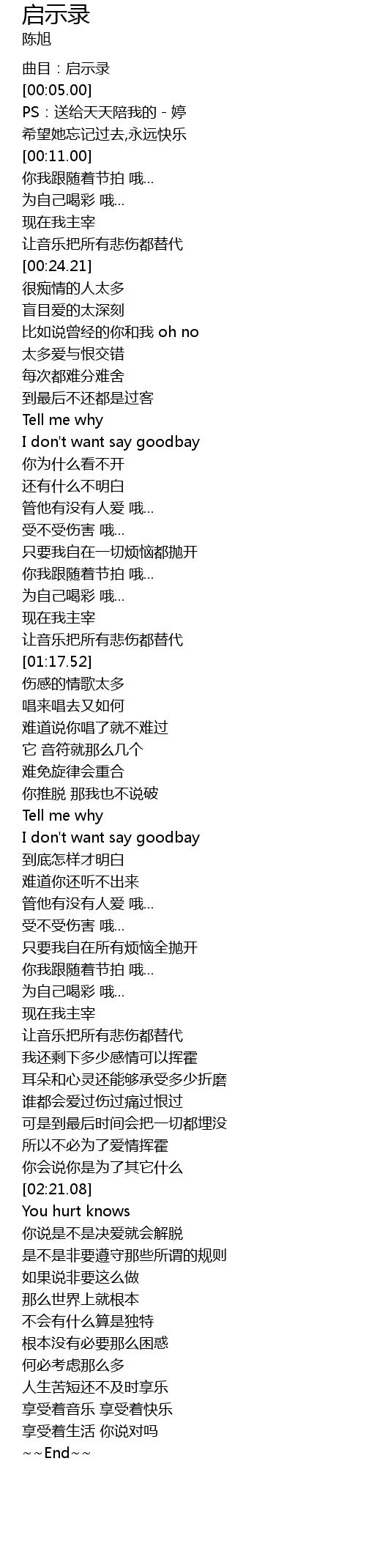 | [02:21.65] | You hurt knows |