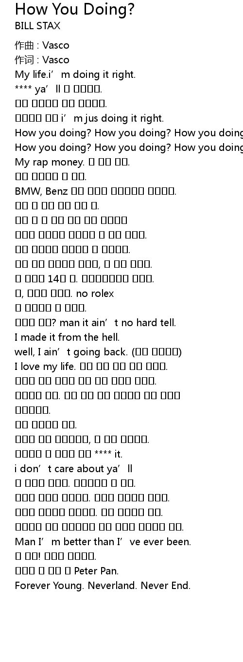 | 어떻게 지내? man it ain’t no hard tell. | |