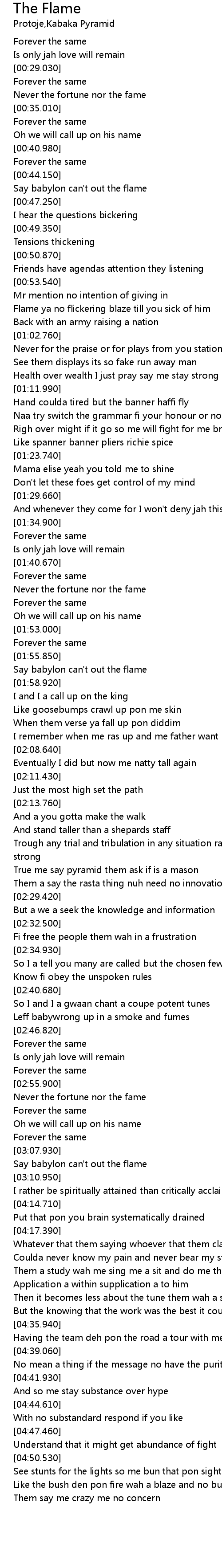 Trough any trial and tribulation in any situation rasta see me stay strong |