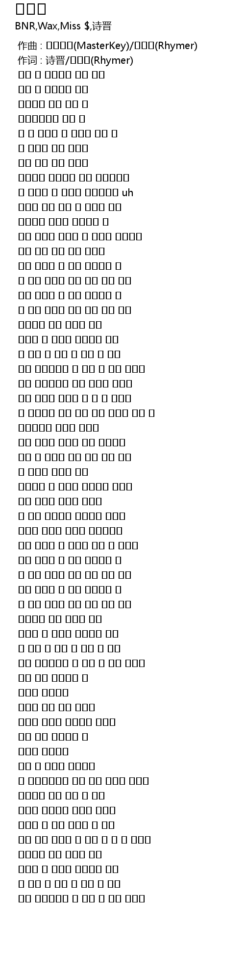 | [00:01.00] | 作词 : 诗晋/라이머(Rhymer) |