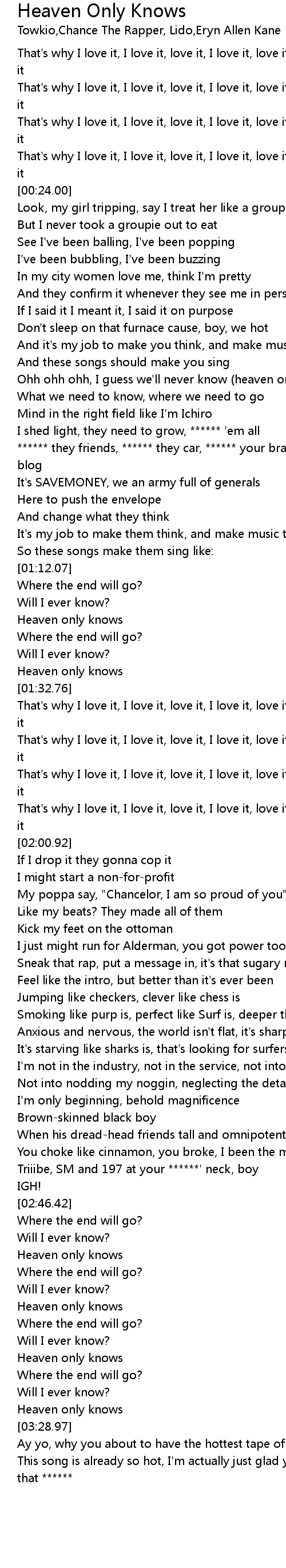 Ohh ohh ohh, I guess we'll never know (heaven only knows) |