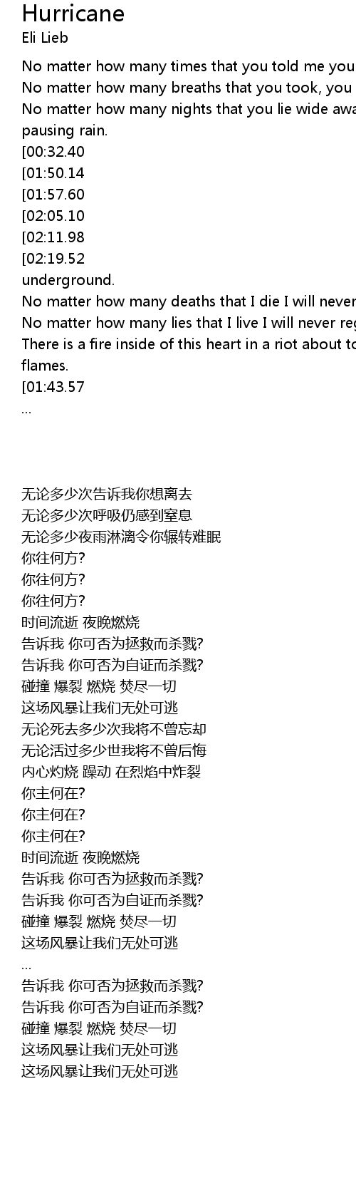 | [01:41.47][01:43.57][01:45.53] | Where is your god? |